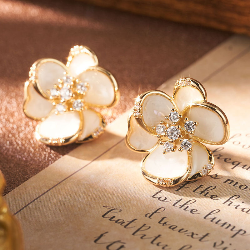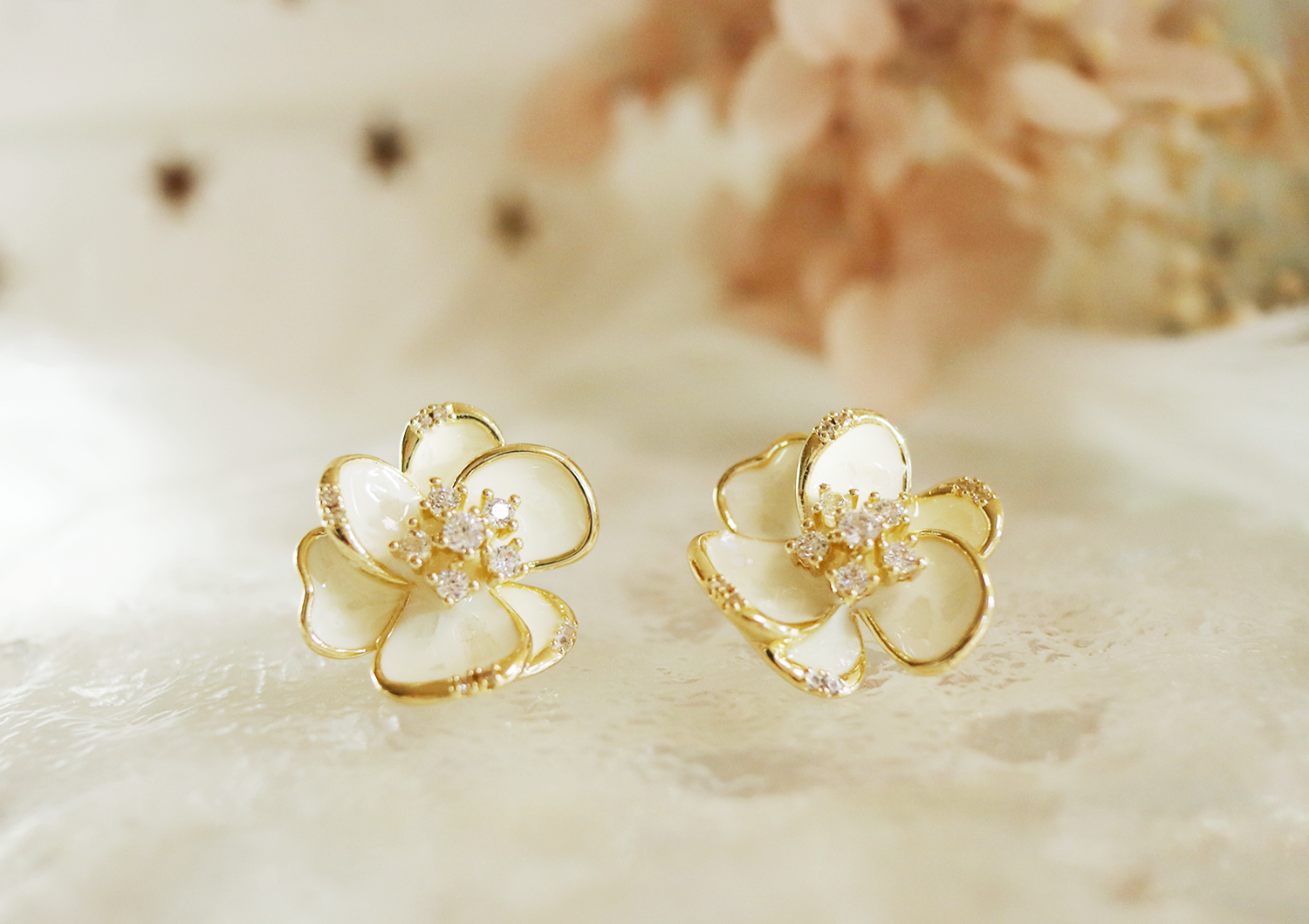 光を受けて上品にきらめく、フラワーモチーフのピアス。