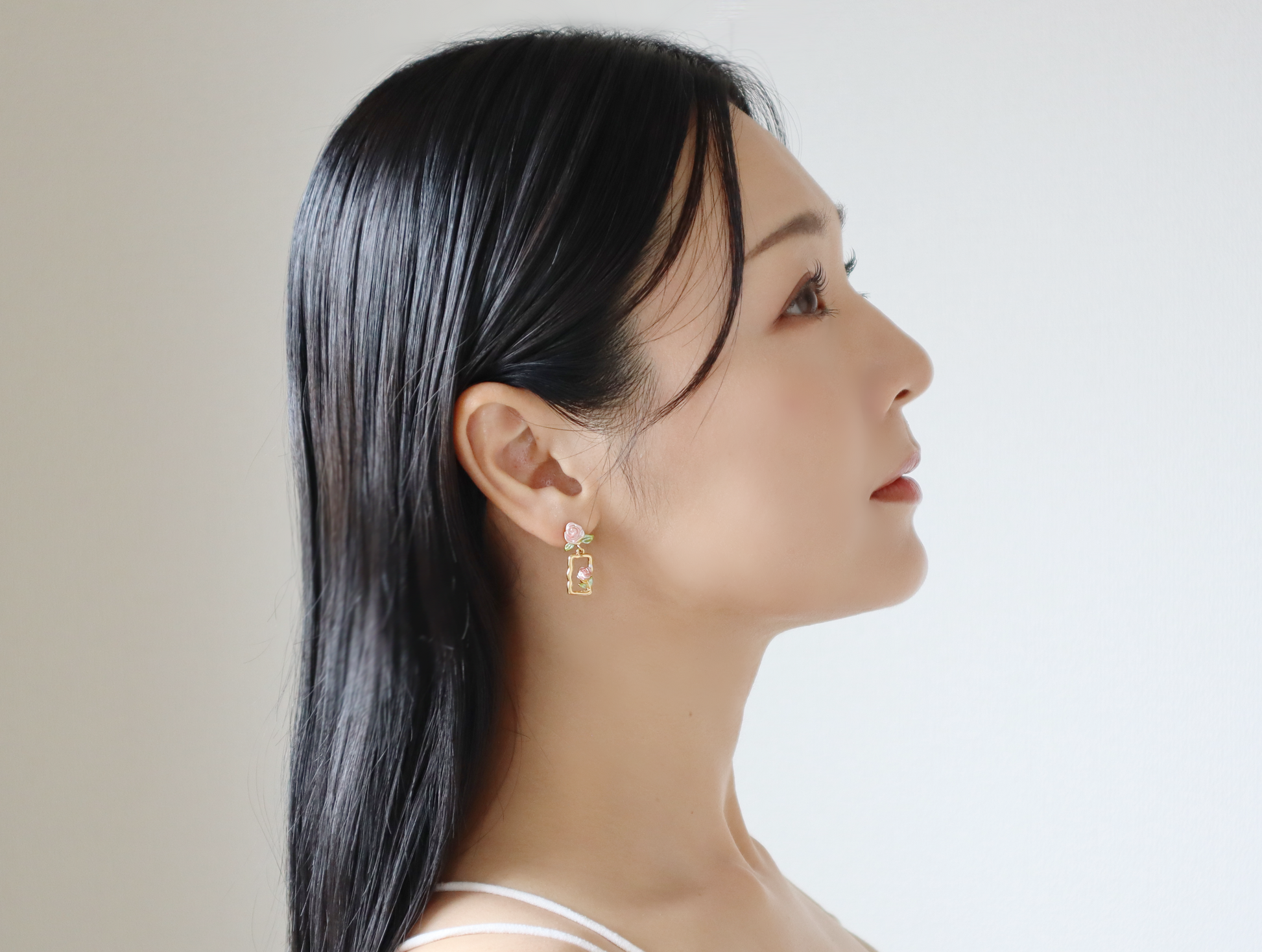 ポスト部分は耳への負担を軽減するため柔らかめに仕上げ、アレルギー防止加工を施しております。また、天然石や天然素材を使用した商品には、自然由来の色味や形の違い、小さな傷や内包物が見られることがありますが、素材の個性としてお楽しみください。ポスト部分には、透明のシリコン樹脂を採用。 耳にやさしいしなやかなフィット感をお楽しみいただけます。 -