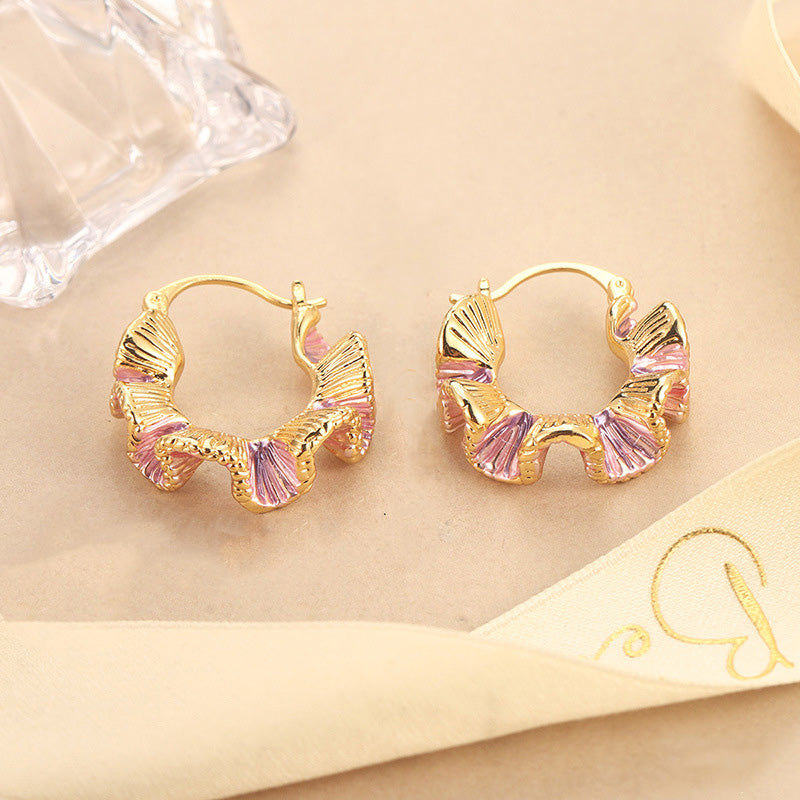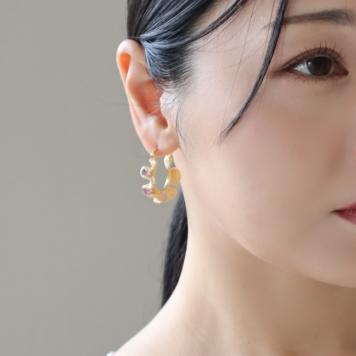 「Twilight Rosé Shine」は、花びらのような優美な曲線が耳元を包み込み、可憐さと上品さを同時に叶えるフープピアスです。
